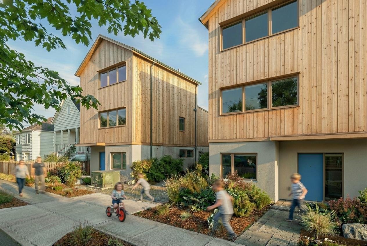 Building on the City’s SSMUH framework and pre-approved design approach, we created adaptable, construction-ready prototypes that respond to common lot conditions and infill scenarios. Each design is coordinated to align with zoning, BC Building Code requirements, and typical permitting considerations — helping reduce redesign, uncertainty, and approval timelines.